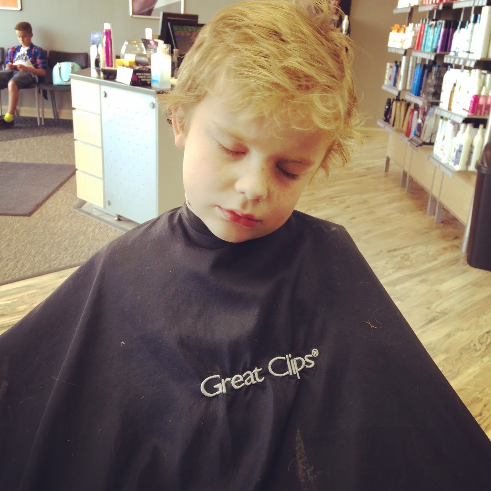 I took the boys to get hair cuts one day and I guess Emery was just a bit tired...He full on fell asleep while getting his hair cut!